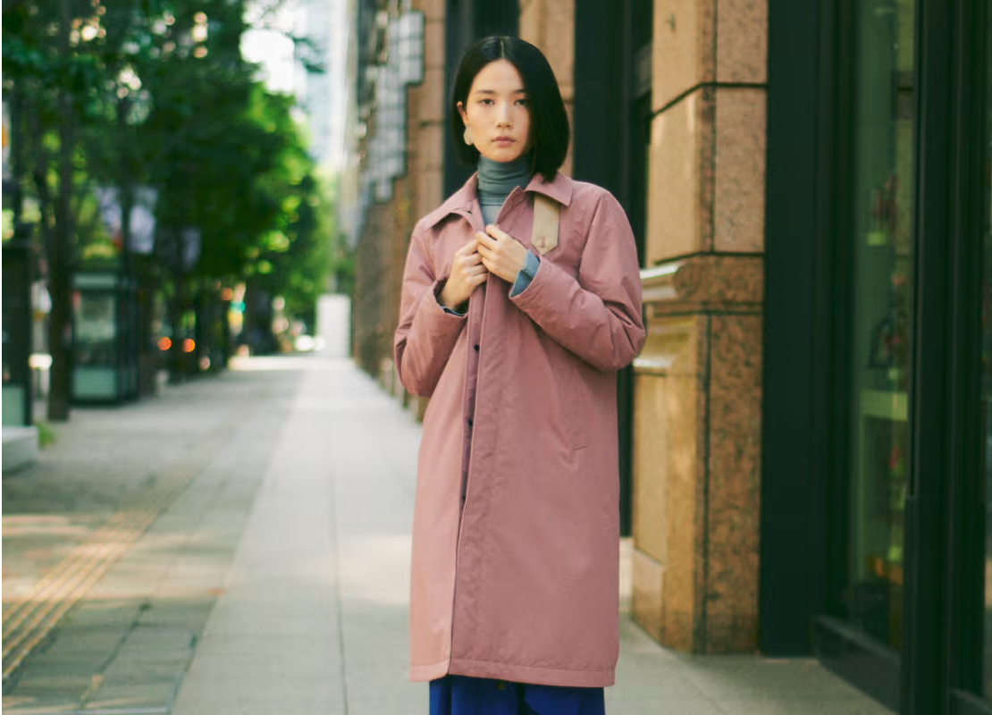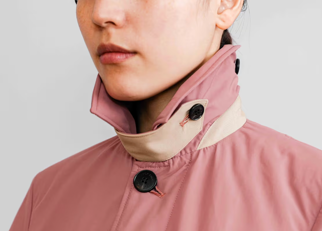 The fabric is made of 100% eco-friendly dead stock polyester. It uses a high-density water repellent function, so you can feel free to wear it stylishly on rainy days.