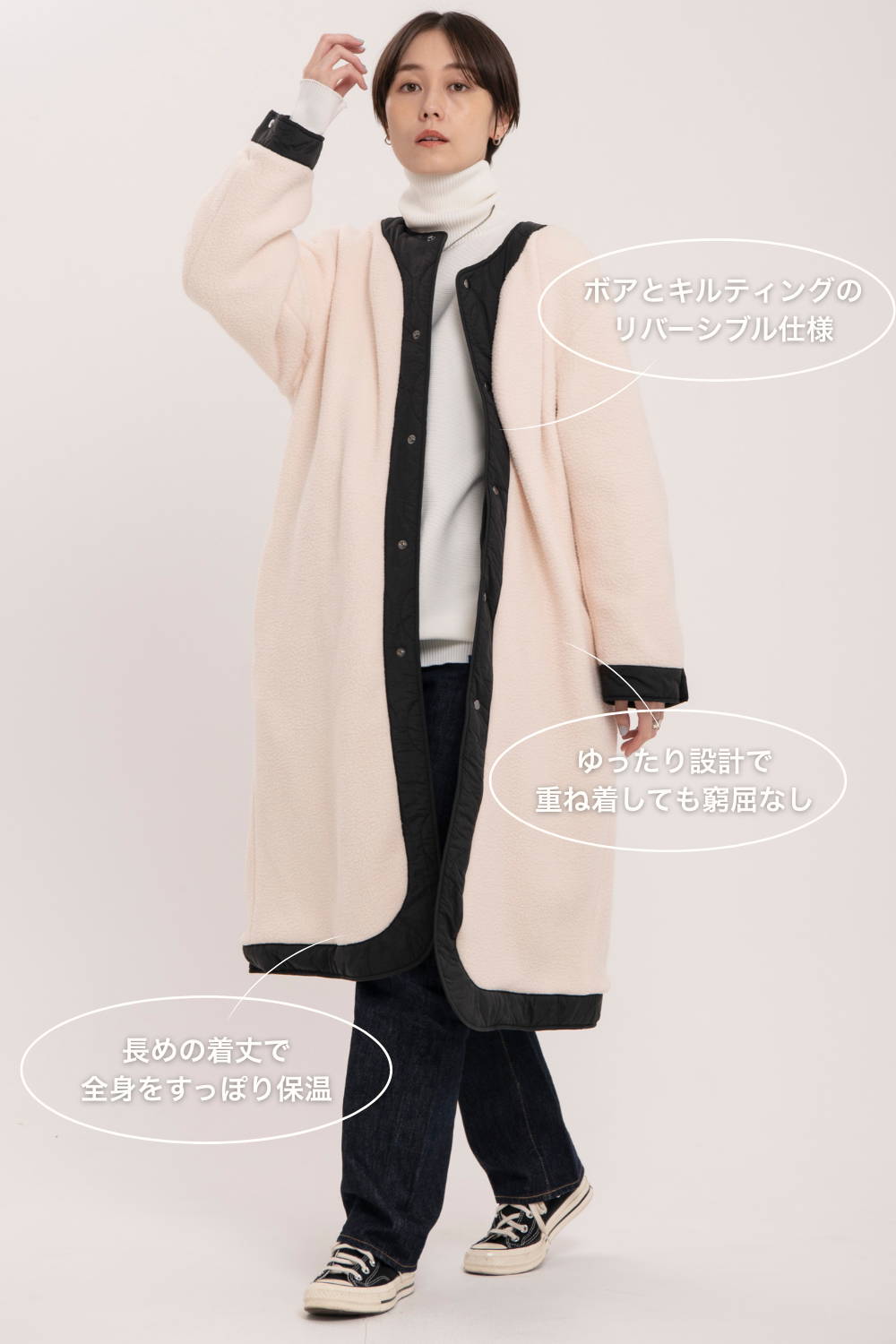 ・“ボア×キルティング”を気分で使い分けられる2WAYリバーシブル