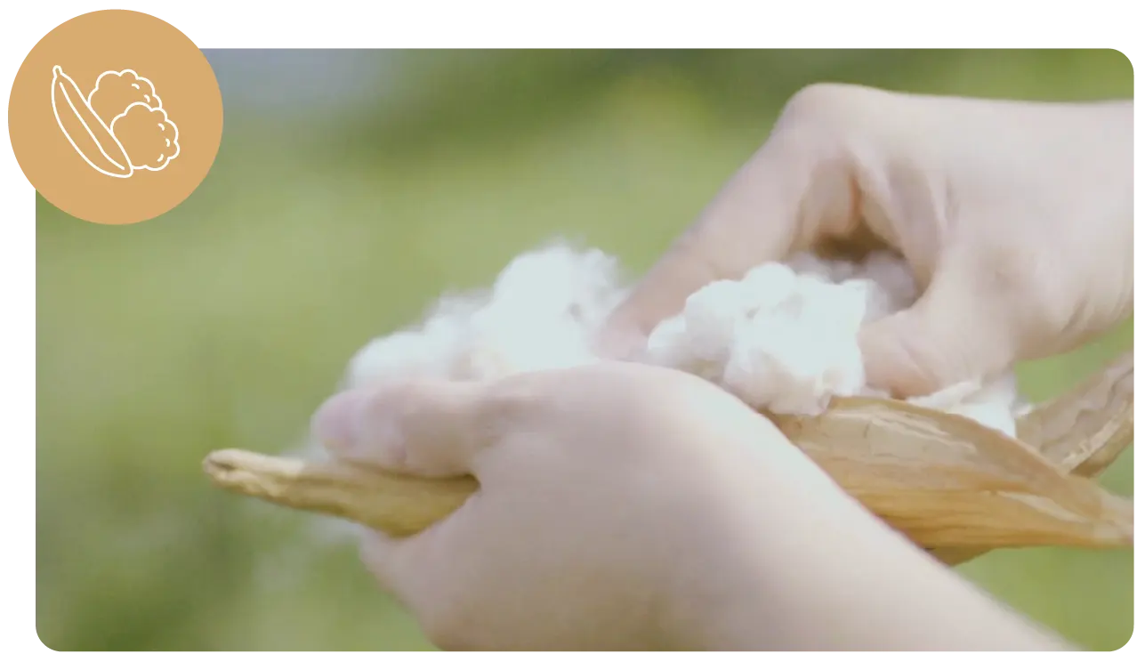 カポックは木の実なので木を伐採することも、動物の羽毛をいただくこともありません。