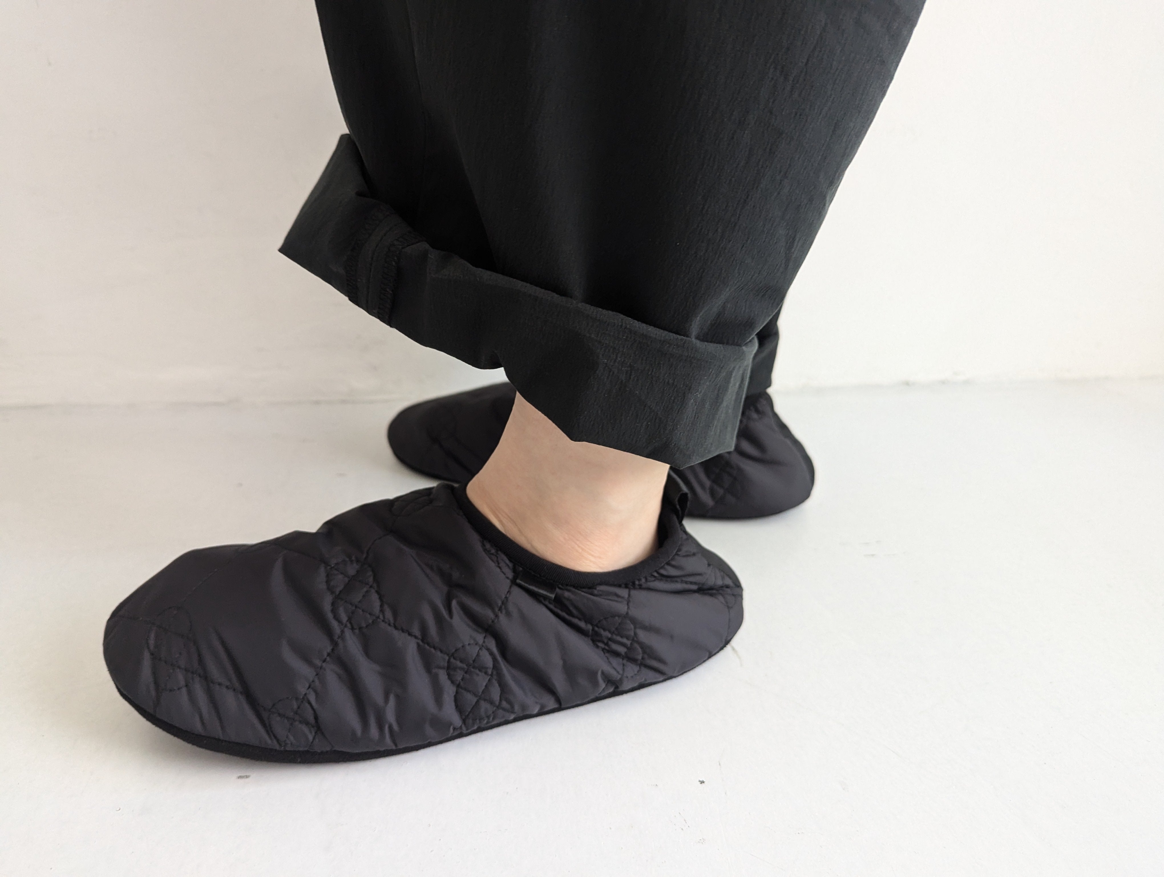 KPOK KNOTロゴをモチーフにしたオリジナル柄のキルティングを施したルームシューズ。