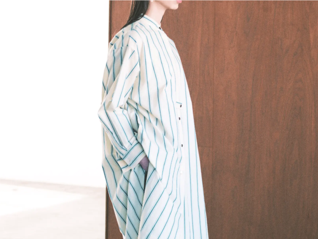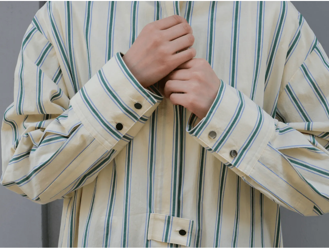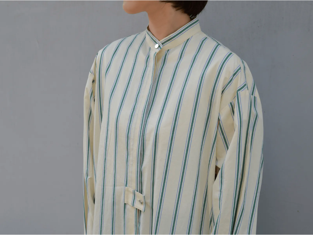【Unisex】スタンドカラーガウンワンピース:ストライプ