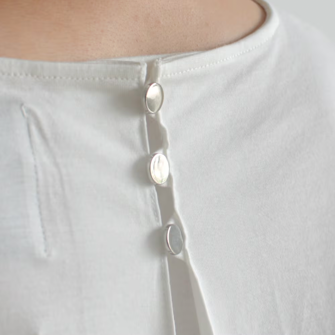 背面の3つのボタンがあることで、後ろから見るとブラウスを着ているようなデザインに。
