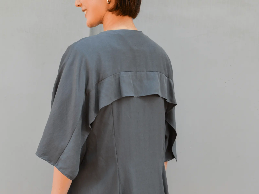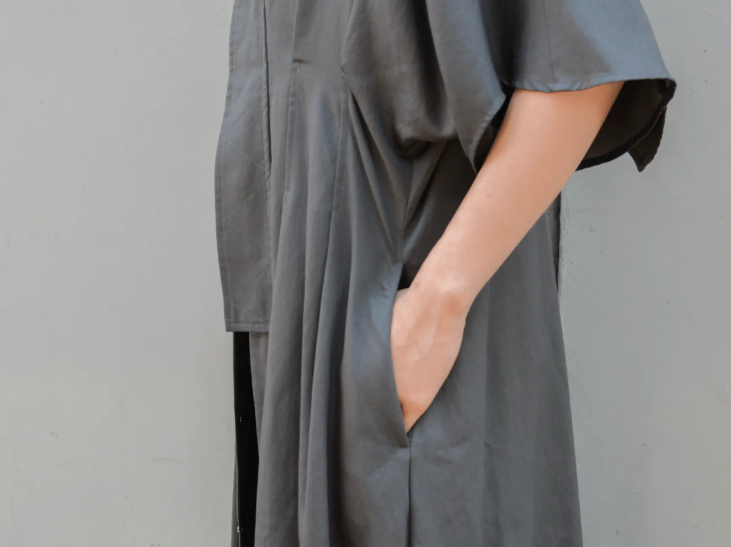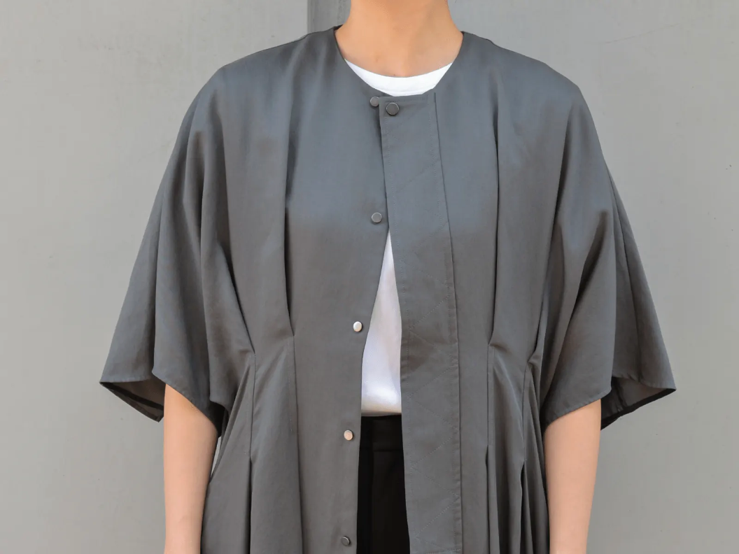 ワンピースとしてはもちろん、背中にある羽のようなディティールが風に揺れ、Tシャツとスラックスなどのシンプルスタイルに羽織ればコーディネートを華やかにしてくれます。