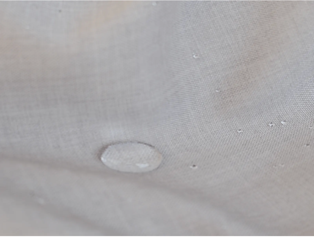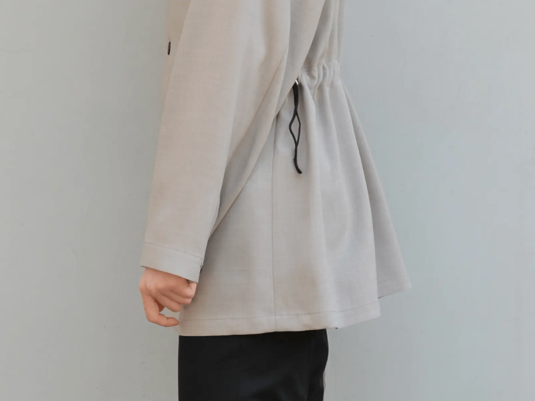 適度なストレッチ性と撥水性を兼ね揃えた「リサイクルポリエステル」を使用した生地で、程よいハリ感があり、天候を気にせずサッと羽織り出かけることができます。